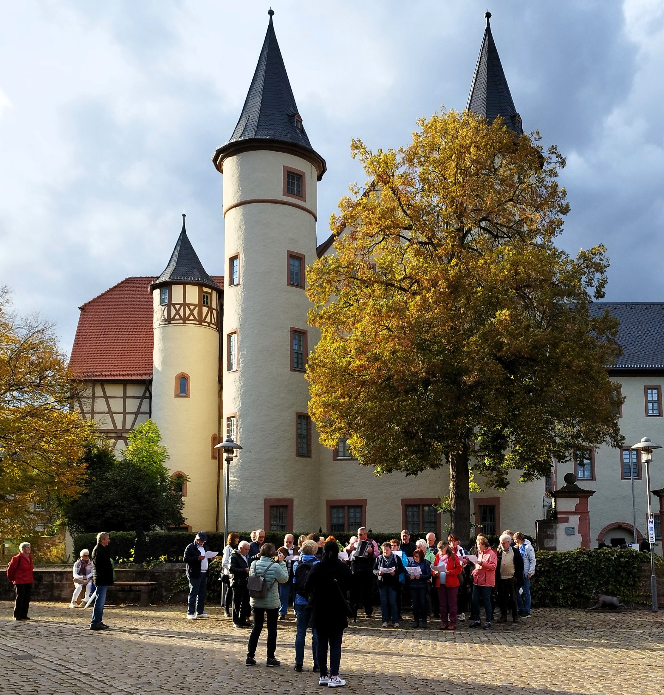 Nach der Museumsführung konnte dann noch jeder auf eigene Faust Lohr am Main erkunden oder einen Kaffee trinken. Bevor es dann zurück nach Hause ging, stellte sich die Reisegruppe noch einmal auf dem Schloßplatz auf und sang das „Lied an Lohr“ was schon im Bus auf der Anreise geübt wurde. Mit Akkordeon-Live-Musik von der letzten Bank schunkelte die Reisegruppe wieder in die mittelfränkische Heimat zurück.