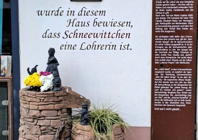 Danach ging es weiter zum Mittagessen mit nachfolgender Fahrt nach Lohr am Main. Dort wurde das Freifräulein Maria Sophia Katharina Margaretha von Erthal im Jahre 1729 geboren. Der Sage aus dem Volkmunde nach, hatte sie eine Haut so weiß wie Schnee, Lippen so rot wie Blut und Haare so schwarz wie Ebenholz. Wofür ihr der Name „Schneewittchen“ Zuteil wurde. Mit der Führung im Spessart Museum kamen leichte Zweifel über den Wahrheitsgehalt auf, denn unsere Führerin erklärte, dass Schneewittchen vermutlich blondes Haar hatte. Was man wiederum auch nicht so in Augenschein nehmen konnte, da die hohen Damen und Herren der damaligen Zeit meist weißgepuderte Perücken trugen. Dann steht noch die Frage im Raum wer waren dann die sieben Zwerge hinter den sieben Bergen? Vielleicht die berühmt berüchtigten Räuber vom Spessart, mit den sieben oder mehr Bergen oder die Stollenarbeiter, aber diese Frage konnte man uns leider nicht beantworten. Den „sprechenden“ Spiegel sahen wir im Museum, der nur leider nicht wirklich sprechen konnte, sondern wie in der damaligen Zeit oft üblich, war er mit mehrdeutigen Sprüchen und Bildern versehenen Rahmen verziert. So konnte sich jeder seinen eigenen Reim machen und die Sagen und Märchen an historischer Stätte wirken lassen.